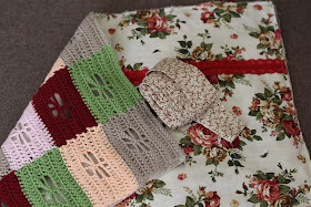 Вязала крючком №3.  На все полотно ушло 96гр. хлопковой пряжи (я его взвесила). Размер прямоугольников 9х6см. Крайние прямоугольники - 10х6см и 9х7см.